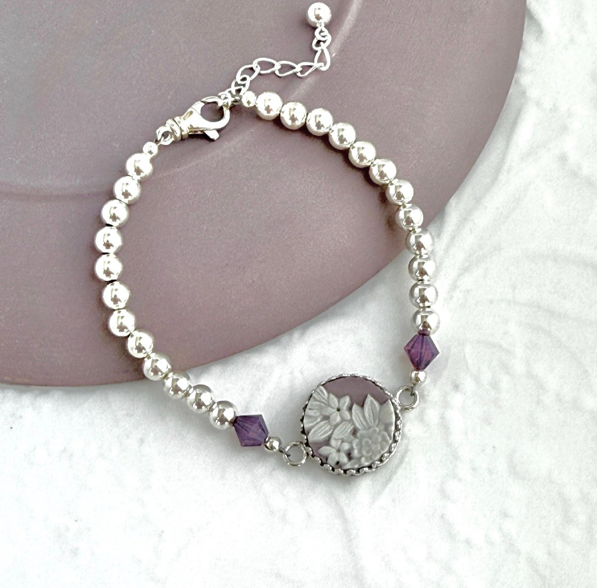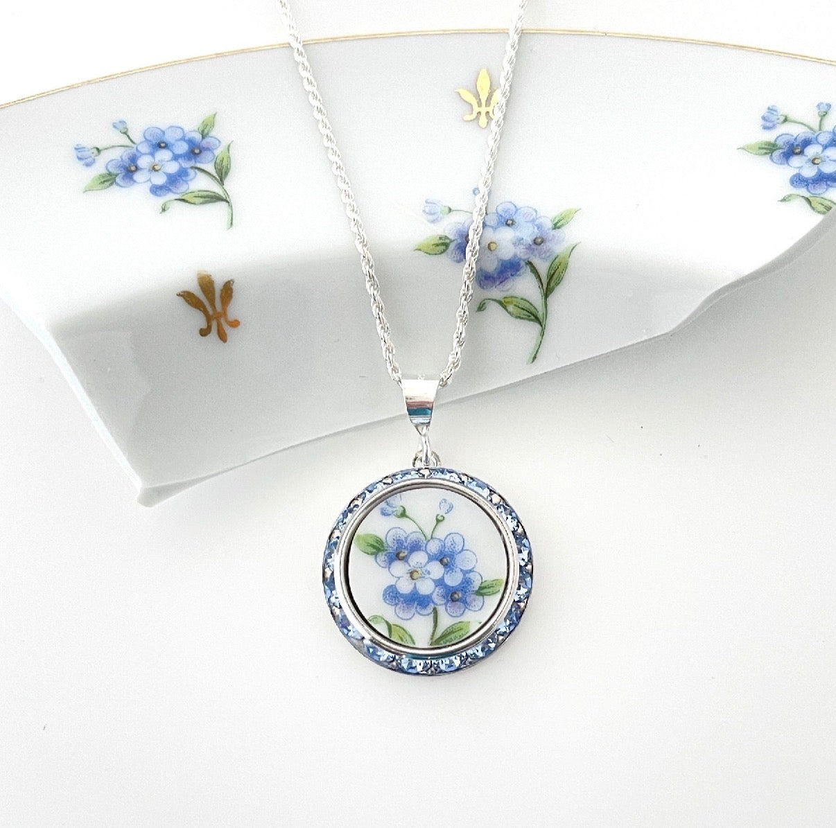 Handmade broken china jewelry featuring vintage repurposed forget me not china. Broken china jewelry...