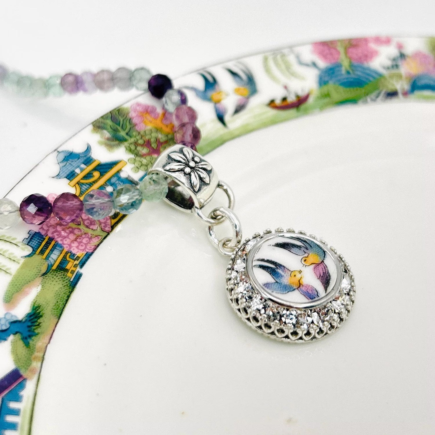 Handmade broken china keepsake jewelry featuring your family china.
